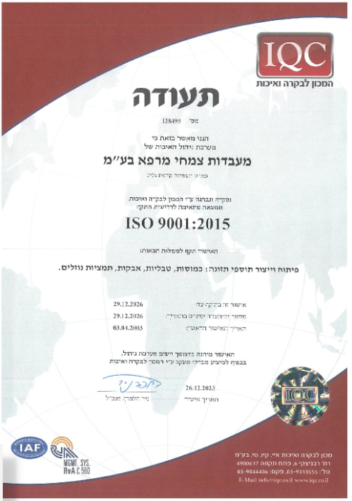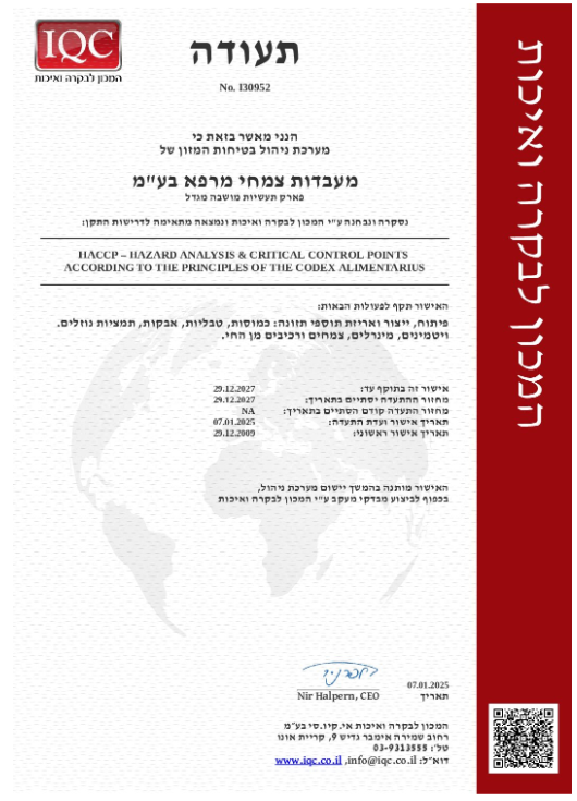מוצרי החברה מיוצרים בישראל כחול לבן בחברת "מעבדות צמחי מרפא" יצרנית תוספי התזונה מהמובילות בישראל, אודות המעבדה.