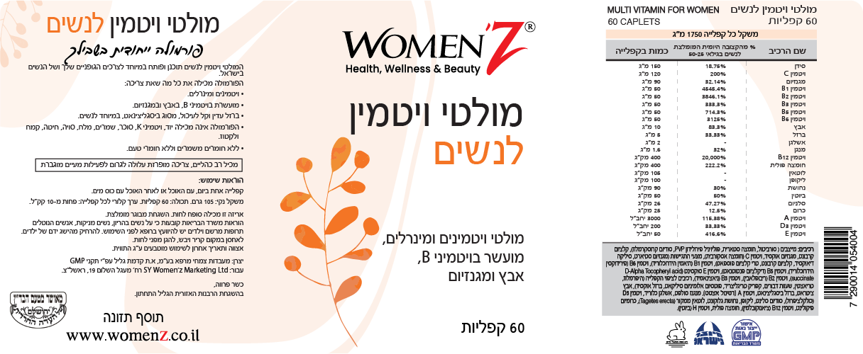 המולטי ויטמין לנשים תוכנן ופותח במיוחד לצרכים הגופניים שלך ושל נשים בישראל.